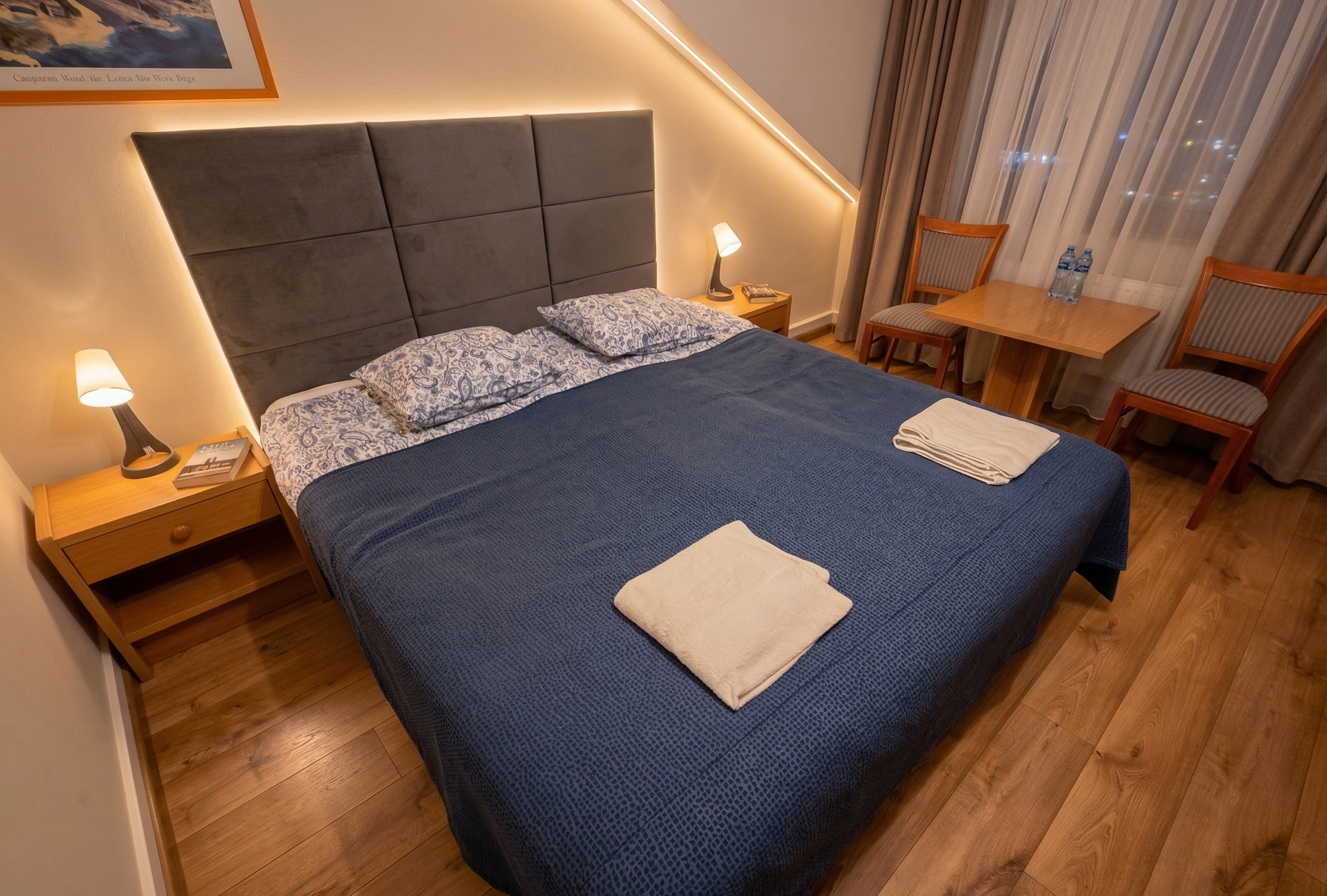 Przytulne pokoje 1-, 2- i 3-osobowe z łazienką, telewizorem i wszystkim, czego potrzebujesz do spokojnego wypoczynku – do tego darmowe WiFi i widok na jezioro prosto z okna. Rano budzisz się przy śpiewie ptaków, wieczorem zasypiasz przy szumie lasu. Doba hotelowa trwa od 14.00 do 12.00.